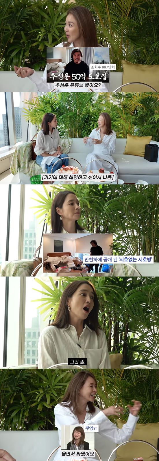 아노 시호는 이민정에게 "추성훈 유튜브 봤냐. 약간의 오해가 있어서 (해명하고 싶었다)"라고 말했다. 이어 그는 추성훈의 유튜브에서 공개된 깨끗하지 않았던 집에 대해 "일하는 엄마는 다 그렇지 않냐"고 말했다. 이민정은 "그럼요. 저도 남편이 (촬영을) 말하지 않고 부르면 화난다"라며 야노 시호의 의견에 동의했다.