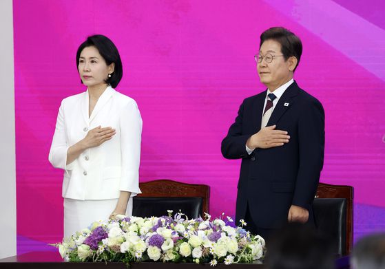 이재명 대통령과 부인 김혜경 여사가 4일 국회에서 열린 제21대 대통령 취임식에서 국민읳례를 하고 있다. 임현동 기자