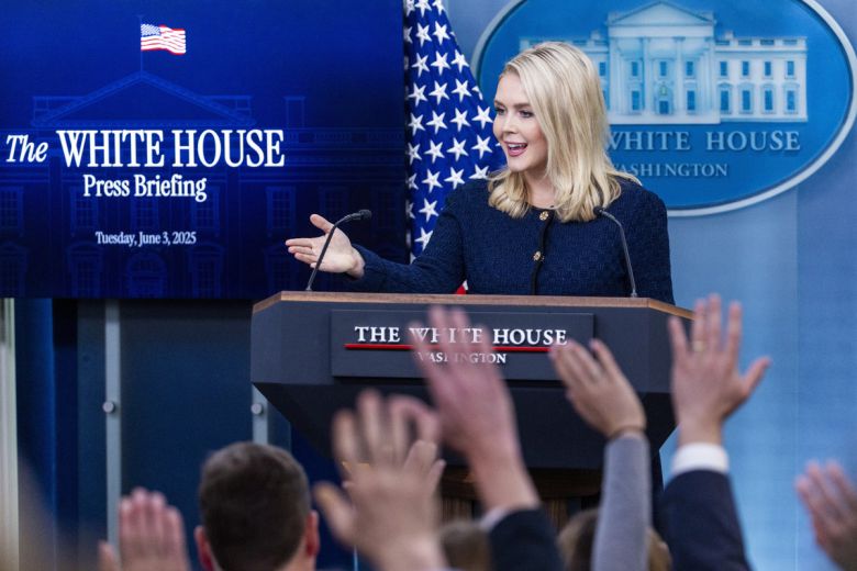 브리핑하는 백악관 대변인 캐롤라인 레빗 미국 백악관 대변인이 3일(현지시간) 출입기자들과 일일 브리핑을 진행하고 있다.워싱턴=EPA연합뉴스