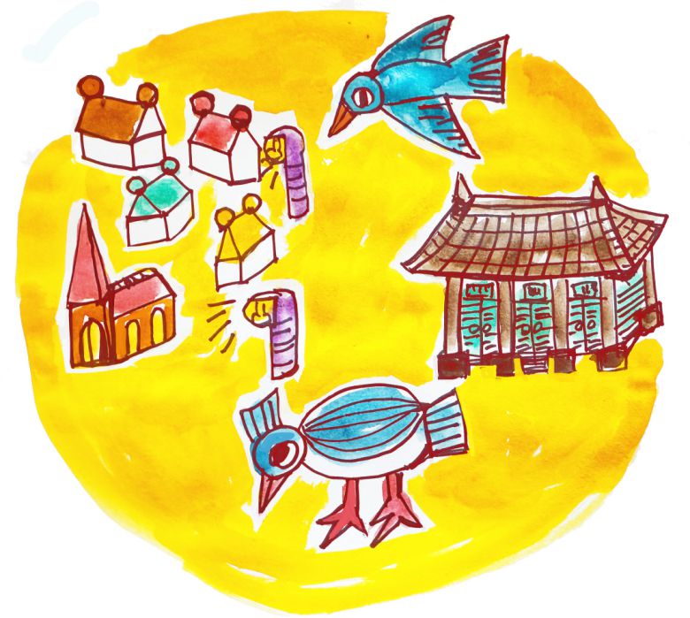 교회엔 천사가 있고 절집엔 보살이 있다. 마을에도 천사가 살고 보살이 산다. 보통 부르기를 “저 아재는 천사다, 저 아짐씨는 보살이다”. 뭐 맛난 거 나눠 먹으면서 서로들 칭찬해. 산골짜기 절에 다니다가 관절이 아프면 가까운 천주교 공소나 교회로 종교를 갈아탄다. 보살이 집사나 스텔라, 마리아 자매가 되고 날개도 없으면서 천사가 되기도 해. 천사 하면 당신도 날개를 떠올릴 텐데, 교회에 가면 집사다 뭐다 벼슬을 주면서 날개를 보통 달아준다. 하지만 추락하는 것은 날개가 있듯 어디나 인간이 모이면 묘한 갈등이 생겨. 잘되라 쭉쭉 밀어주기도 하지만 벼랑에서 밀기도 하지. 교회를 그만두고 다시 절집에 돌아가기도 한다. 배신 한번 때렸다고 부처님이 그렇게 야박한 분은 아니셔. 반대로 절에 갔다가 다시 교회에 와도 예수님이 뭐 배신을 밥 먹듯이 한 베드로를 수제자로 두신 분인지라 어서 옵쇼~다.
