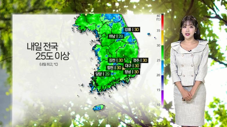 전국 낮 기온은 25도 이상을 보여 더워지겠고요.