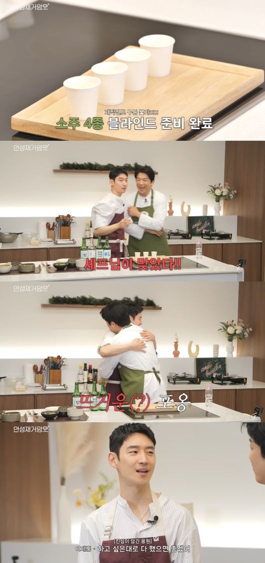 번갈아 소주 잔을 마시며 정답을 확인한 두 사람. 그 결과 안성재는 정답을 모두 맞췄고 깜짝 놀란 이제훈은 “이게 어떻게 가능하냐. 셰프님 소주 감별사 맞으시네요”라며 갑자기 포옹해 웃음을 자아냈다.