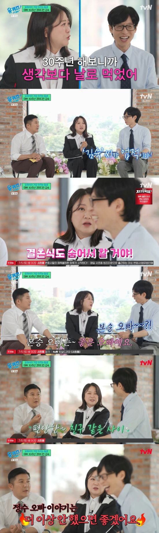 '데뷔 30주년' 김숙, ♥구본승 러브라인 언급…"윤정수 이야긴 하지 마" (유퀴즈) [종합]
