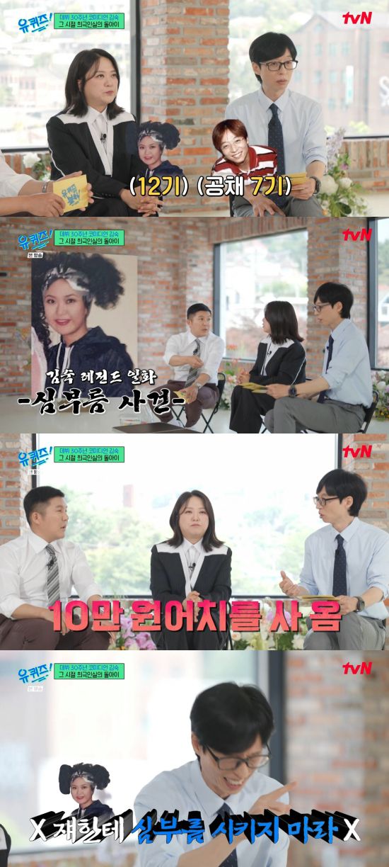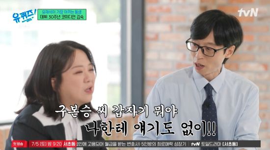 4일 방송된 tvN 유 퀴즈 온 더 블럭'(이하 '유퀴즈')에서는 김숙이 게스트로 출연한 장면이 전파를 탔다.