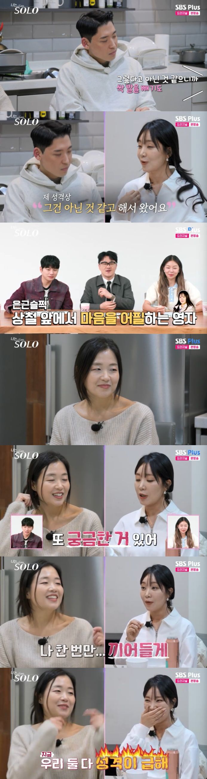 영자는 "차분한데 직진하는 모습이 매력적이고 정서적으로도 안정돼 있을 것 같다. 자기만의 취향이 있어서 자기만의 색이 있을 것 같아 매력적이다. 그래서 용기를 내어 왔다"라며 부끄러워했다.
