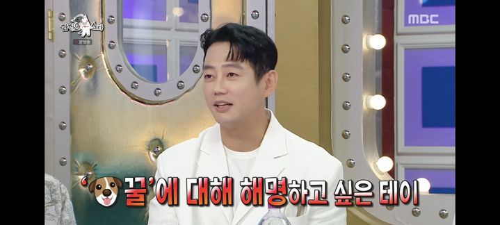 테이는 4일 방송된 MBC TV 토크 예능믈 '라디오 스타'의 '여심 잡고 있는데~' 특집에서 "개꿀이라는 단어가 방송에 나갈 줄 모르고 한 말"이라면서 이렇게 밝혔다.