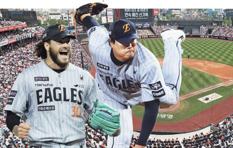 프로야구가 팬심과 성적 두마리 토끼를 모두 잡은 한화의 선전에 힘입어 가파른 흥행 페이스를 내달린다. 이 가운데 독수리 선발진 핵심 코디 폰세(왼쪽)과 류현진이 마운드 중심을 지키고 있다. 사진=한화 이글스 제공 |