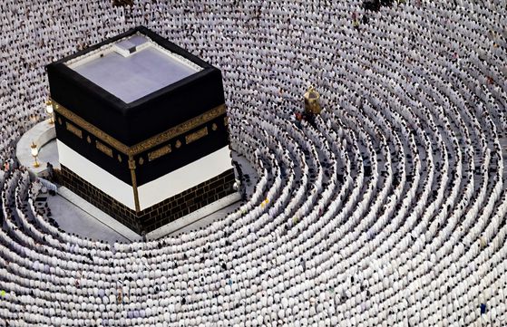 지난해 6월 13일(현지시간) 사우디아라비아 성지 메카의 대사원 '카바'를 도는 의식 중인 이슬람 신도들. AFP=연합뉴스