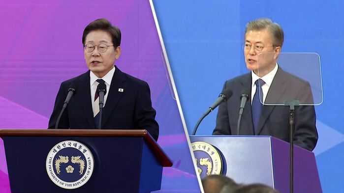 왼쪽은 이번 이재명 대통령, 오른쪽은 문재인 전 대통령 땝니다.