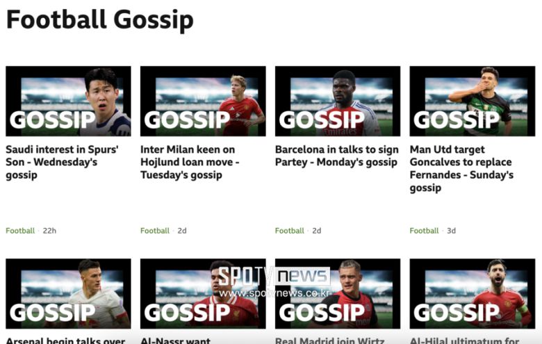 영국 공영방송 ‘BBC’는 5일(한국시간) 축구 소식들을 다루는 가십란에서 “사우디아라비아가 손흥민 영입에 관심”이라면서 손흥민의 사우디아라비아 이적설을 1면에 다뤘다.