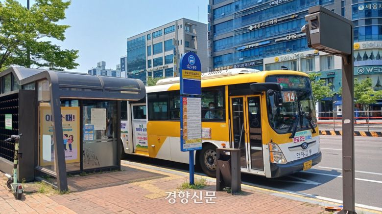광주 서구 치평동의 한 버스정류장에서 시내버스가 정차해 있다. 강현석 기자 |
