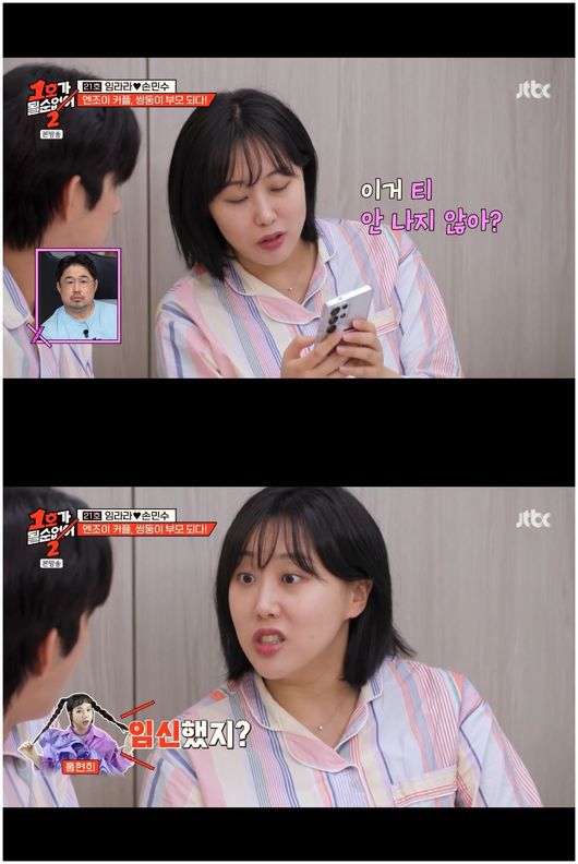 4일 방영한 JTBC 예능 ‘1호가 될 순 없어2’에서는 개그맨 커플 임라라와 손민수가 등장했다. SBS 개그맨으로 데뷔한 이들 부부는 현재 유튜브에서 활약 중이다. 국내 커플 유튜브 1위, 유튜브 구독자 수 255만을 자랑하는 이들은 개그맨 부부들 중 가장 젊은 나이를 자랑했다. 현재 임라라는 쌍둥이를 임신 중으로, 심한 입덧을 앓고 있었다.