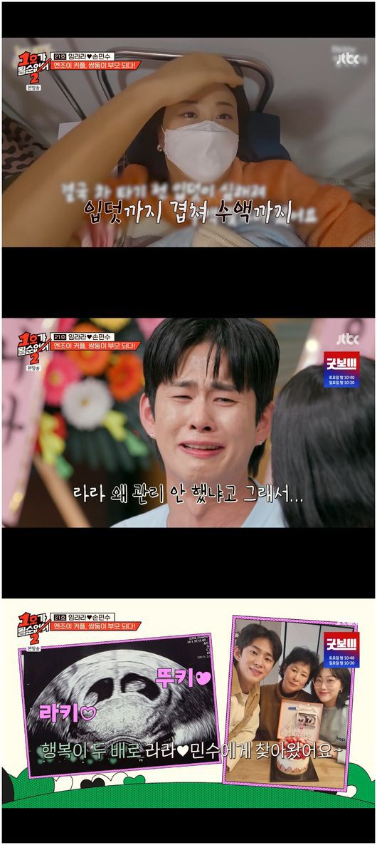 임라라는 “임신 사실 알자마자 입덧이 시작됐는데, 아예 일상이 안 된다. 입덧약을 풀로 먹어도 입덧이 너무 심하다”라면서 “하루는 토하다가 기절하면서, 문을 열면서 기절했다. 아이가 잘못될까 봐”라며 “그때 내가 쓰러진 걸 보고 민수가 놀라서 그때부터 정말 잘해준다”라고 말했다.