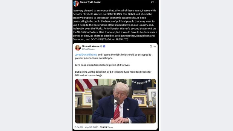 트럼프 대통령은 이날 사회관계망서비스(SNS) 트루스소셜에 올린 글에서 이같이 밝히고, 자신과 대척점에 서 있는 진보 성향 정치인인 엘리자베스 워런 연방 상원의원(민주·매사추세츠)도 같은 견해를 피력했다고 소개했다.