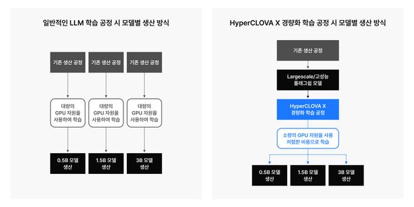 네이버는 자사 서비스 적재적소에 AI 기술을 접목하기 위해 하이퍼클로버X 모델의 경량화에 주력하고 있다. 오픈AI, 구글 등 글로벌 빅테크들이 앞다퉈 더 덩치 큰 모델을 개발하는 데 주력하고 있지만, 이를 실제 서비스 전반에 적용하기엔 비용이나 인프라 측면에서 제약 조건이 많기 때문이다. 또 서비스마다 요구조건이 다양한 만큼, 이를 다재다능하게 만족시킬 수 있는 경량 모델의 중요성이 높아지고 있는 상황이다.