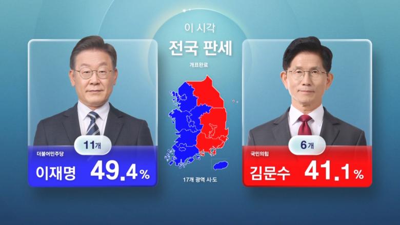 이번 대선의 지지 양상, 일단 동서로 분명하게 나뉘었습니다.
