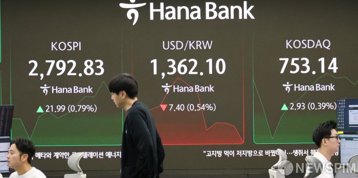 [서울=뉴스핌] 양윤모 기자 = 이재명 대통령 취임 이틀째인 5일 오전 코스피가 전장 종가보다 21.99포인트(0.79%) 상승하며 2,792.83으로, 코스닥은 2.93포인트(0.39%) 상승한 753.14로 시작한 가운데, 서울 중구 하나은행 딜링룸에서 직원들이 업무를 보고 있다. 서울외환시장에서 원·달러 환율은 전장 대비 7.40원 하락한 1,362.10원에 거래를 시작했다. 2025.06.05 yym58@newspim.com