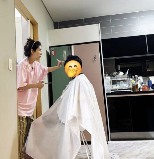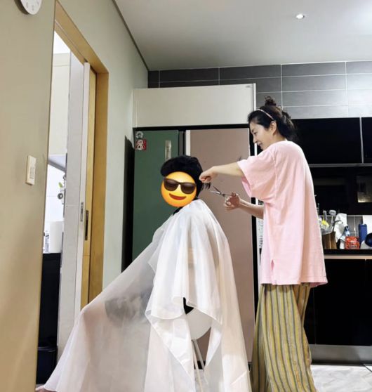 [OSEN=최이정 기자] 배우 송윤아가 직접 가위를 들었다. 밤 늦은 시간, 주방에서 아들을 위해 미용사로 깜짝 변신한 것.