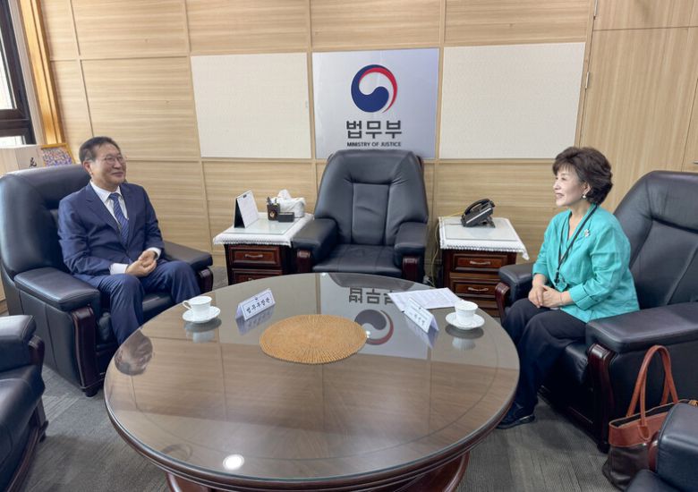 박선영 진실화해위원장(오른쪽)이 지난달 29일 정부 과천청사에서 박성재 법무부 장관과 만났다며 페이스북에 올린 사진. 진실화해위 제공 |