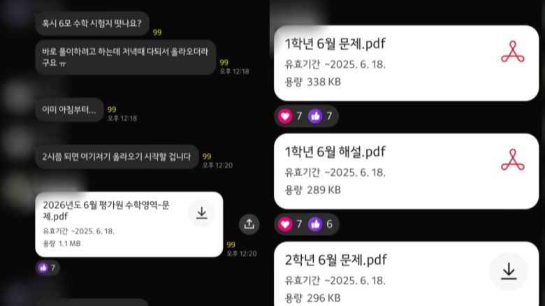 앞서 어제(4일) 치러진 고등학교 1학년 6월 전국연합학력평가 영어영역 정답과 해설이 시험 시작 시각인 낮 1시 10분보다 최소 40분 전에 SNS 강사 정보공유방과 오픈 채팅방 등에 공유된 정황이 파악됐습니다.