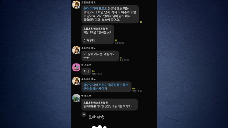 이런 가운데, 유출 의혹 보도 이후 정답이 공유된 SNS 대화방 참여자들이 파일을 지우려고 시도하거나 대화방 자체를 없애는 등 증거인멸을 시도한 정황도 포착됐습니다.