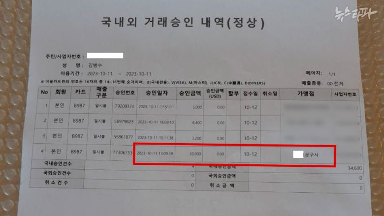 그런데 김 위원장 말고 당시 점심 회동에 참석한 또 다른 인물(A씨)의 증언이 나왔다. 이에 더해 김병수 위원장은 점심 회동 당일에 자신이 사용한 신용카드 내역을 취재진에게 제공했다. 회동 당일, 자신의 동선을 증명할 수 있는 자료였다.