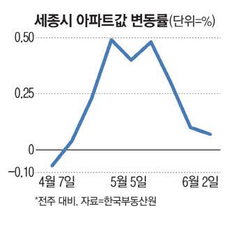 5일 한국부동산원 주간 아파트 가격 동향에 따르면 6월 첫째주 세종시의 아파트 매매가격 상승률은 0.07%로 전주(0.10%)보다 상승폭이 감소했다. 4월 마지막주 상승률(0.49%)과 비교하면 상승폭이 무려 7분의 1 수준으로 감소한 셈이다.