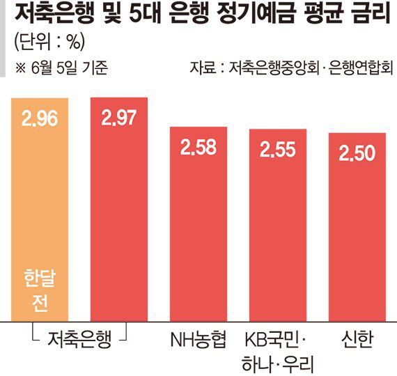 5일 저축은행중앙회에 따르면 전체 79개 저축은행의 1년 만기 정기예금 평균 금리는 2.97%로 집계됐다. 한 달 전(2.96%)보다 0.01%p 올랐다.
