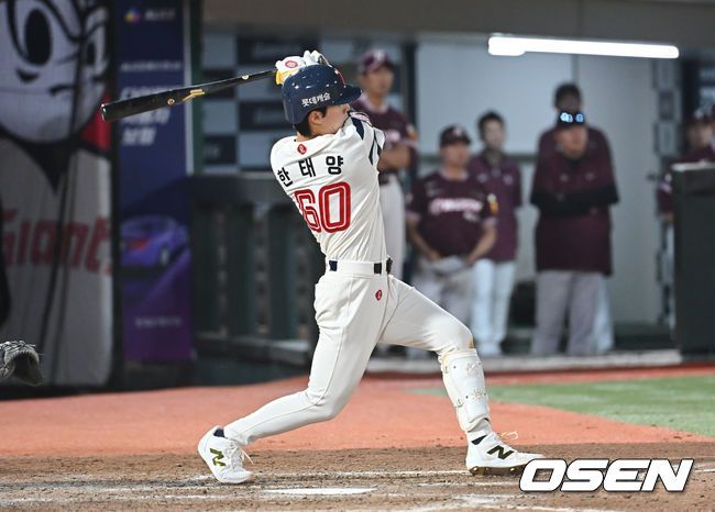 롯데 자이언츠 한태양이 9회말 2사 만루 좌익수 왼쪽 2타점 2루타를 치고 있다. 2025.06.05 / foto0307@osen.co.kr