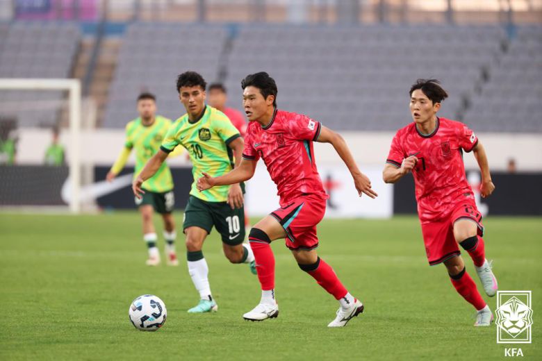 호주는 연계를 통한 공격을 펼친 한국의 공격에 위기를 맞기도 했다. 전반 21분 배준호가 문전에서 때린 슈팅이나 전반 24분 윤재석의 과감한 감아차기 슛이 빗나간 것이 호주 입장에서는 다행이었다.