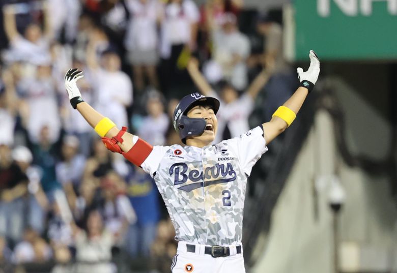 이날 두산은 1회 선두 타자 정수빈이 출루한 데 이어 양의지가 땅볼로 타점을 올리면서 앞서나갔다. 하지만 이후 상대 선발 김도현(7이닝 1실점) 호투에 타선이 틀어막혔고, 5회 한준수의 3루타·박찬호의 적시타로 동점까지 허용하며 분위기를 빼앗기는 듯 했다. 결국 승부는 연장으로 이어졌다. 감독이 사퇴했지만 벗어나지 못한 4연패 수렁. 마무리 김택연은 9회에 이어 10회까지 등판하며 2이닝을 무실점 4탈삼진으로 막는 투혼을 보여줬다. 결국 10회말 2사 1·2루에서 김민석이 끝내기 적시타를 터뜨렸다. KIA 수비진이 좌타자에 대비해 수비 위치를 중앙으로 옮긴 덕을 봤다. 첫 승을 거둔 조성환 감독 대행은 “최고참 양의지 등 모든 선수가 어떻게든 이기겠다는 투지를 보여준 덕”이라며 “감독 대행으로서 부족하지만 선수들 덕분에 귀중한 첫 승을 올렸다”고 했다.