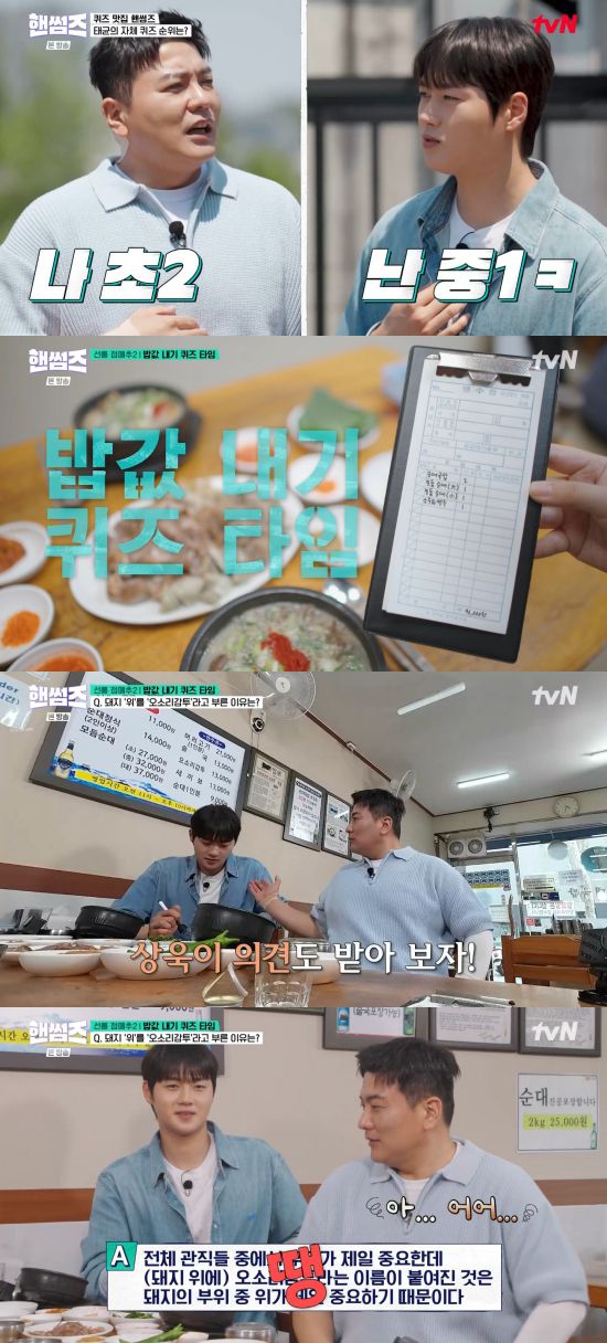 제작진은 밥값내기를 위해 "방금 드신 부위 중에 오소리감투는 돼지의 위를 말하는데 원래 오소리감투는 조선시대 무과의 벼슬자리를 지칭했다. 그렇다면 왜 돼지의 위를 오소리감투라고 불렀을까"라며 퀴즈를 냈다.