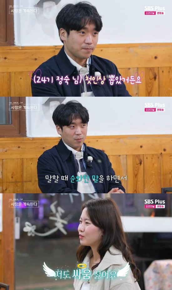 데이트를 마친 뒤 24기 정숙은 25기 영호를 가장 마음에 드는 출연자로 꼽았다. 그는 "자기소개할 때 '기밀'이라고 했던 워딩이 웃겼다. 그게 꽂혔다. 또 연애 가치관이나 화해 방식이 비슷한 게 아니라 똑같았다. 내 선택이 틀리지 않았다 생각했다"고 미소를 지었다.