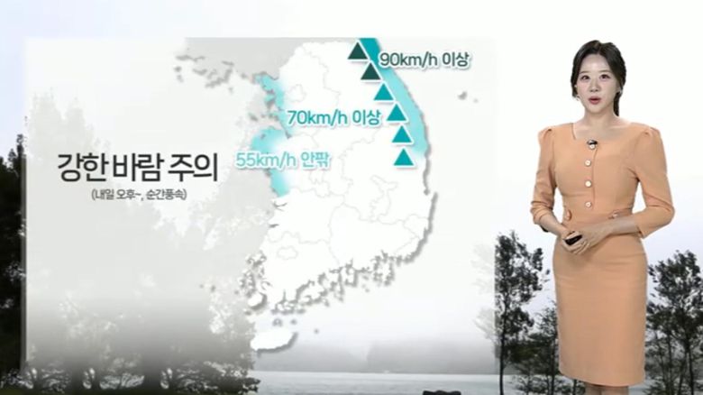 내일 오후부터 중부 서해안과 강원 영동, 경북 동해안과 산지에 강한 바람이 불겠습니다.