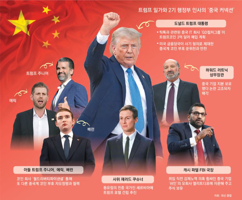 中기업-인사, 트럼프코인 대거 매입… 트럼프 세 아들 회사도 中과 밀착