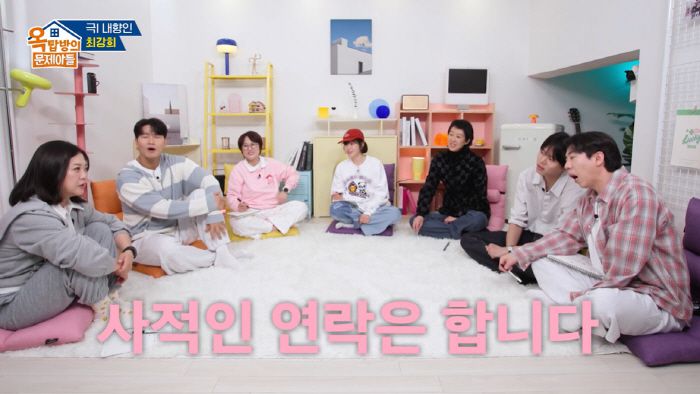 쑥스러운 표정의 김숙. 그러자 홍진경은 "진짜 상황이 어떻게 돼 가고 있냐"고 물었다. 이에 김숙은 "사적인 연락은 한다"고 했고, 양세찬과 주우재는 "'잘 자. 내 꿈꿔'라고 써라"며 기자로 변신해 웃음을 자아냈다.