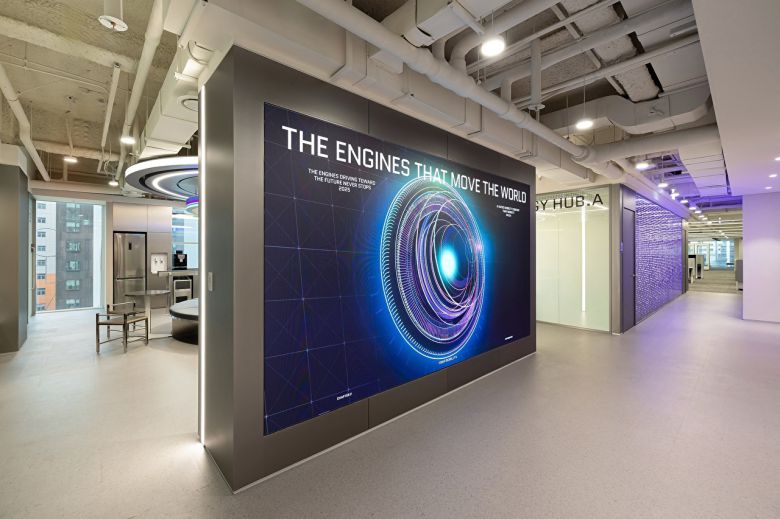 박 디자이너는 "엔진은 일반적으로 동력을 생성하는 장치를 뜻하지만 사옥 브랜딩에는 데이터를 처리하고 분석해 가치를 창출하는 핵심 기술로서의 '데이터 엔진'을 공간의 메타포(상징)로 삼았다"고 설명했다.