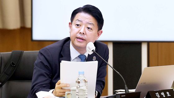 2023년 10월 18일 오전 충북 청주시 서원구 충북교육청 화합관에서 열린 국회 교육위원회 국정감사에서 더불어민주당 김영호 의원이 질의하고 있다. 연합뉴스