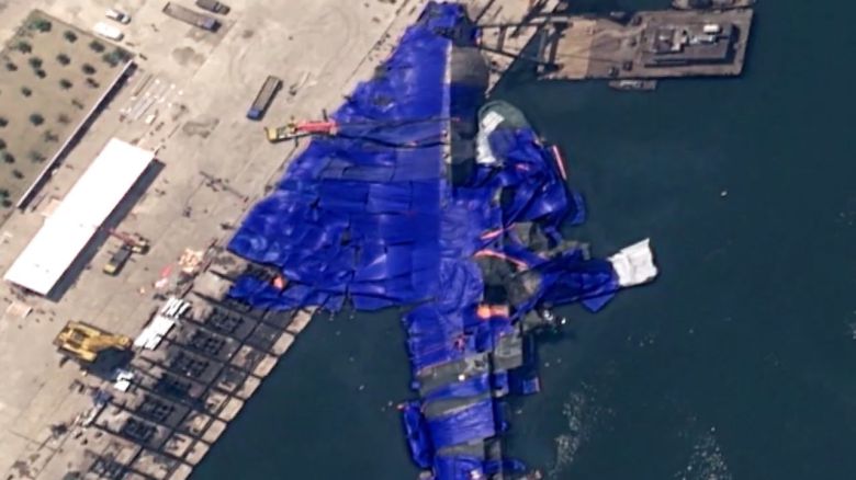 조선중앙통신은 오늘(6일) , 이달 초 함의 균형을 복원한 데 이어 어제(5일) 오후까지 함을 안전하게 진수해 부두에 계류시켰다고 전했습니다.