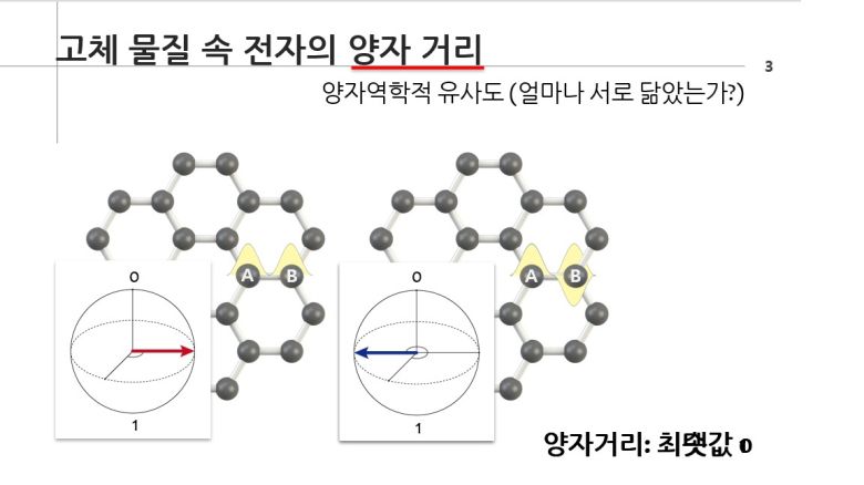 양자거리는 양자세계에서 양자역학적 유사도를 의미하며, 두 입자가 완전히 똑같은 양자 상태일 때는 최솟값 0, 완전히 다르면 최댓값 1이 된다.