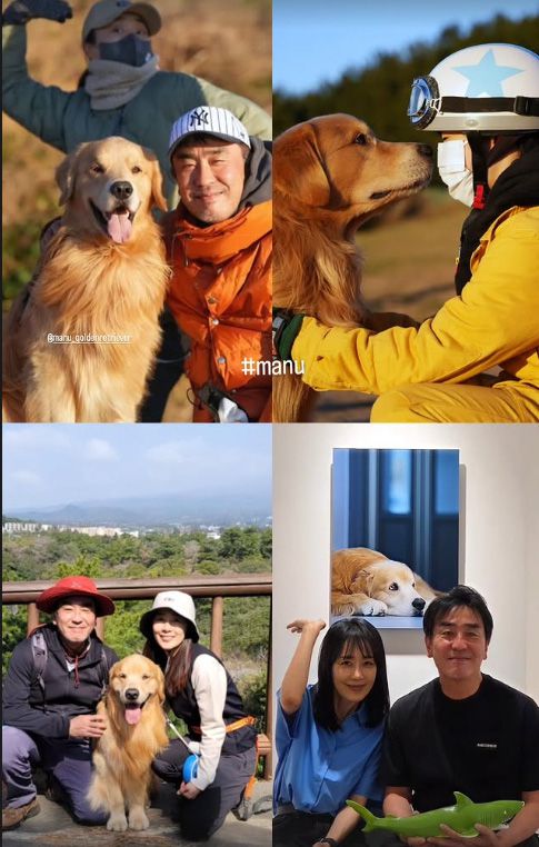 류승룡은 5일 자신의 SNS에 문정희와 반려견 ‘마누’의 행복하고 아련한 순간들을 담은 전시회 ‘금빛동행 - 나의 골든 리트리버 마누와의 행복한 순간들’ 전시회 사진을 게재했다.