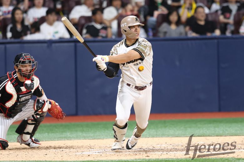 키움은 치리노스가 내려가자마자 점수를 냈다. 이주형이 바뀐 투수 김진성의 초구를 공략해 오른쪽 담장을 큼지막하게 넘기는 비거리 120m짜리 솔로 홈런을 쳤다. 1-1 동점이 되는 순간이었다.