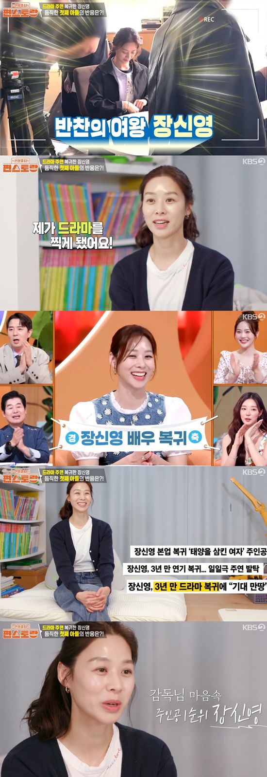 장신영은 "제가 드라마를 들어가게 됐다. 기사 보니까 3년 만이라고 하더라. 부끄러운데 감독님께서 감사하게도 (섭외) 1순위라고 하셨다"라고 밝혔다. 이어 그는 "큰아들이 '엄마 감 떨어진 거 아니지?'라며 긴장감을 풀어주더라"라고 말했다.