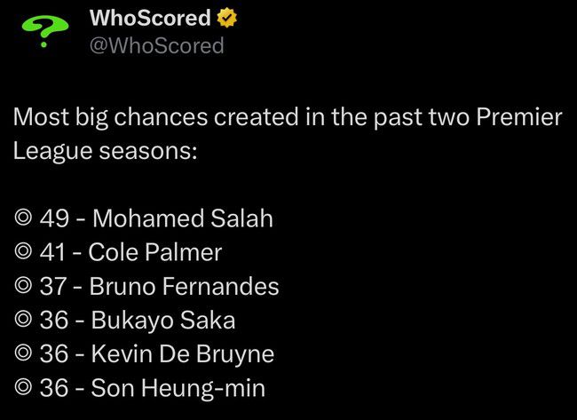 유럽 축구 통계 매체 '후스코어드 닷컴'은 4일(한국시간) '최근 2시즌 간 프리미어리그(PL) 빅찬스 생성 순위'를 집계해 발표했다. 놀라운 건 손흥민도 이름을 올렸다. 매체에 따르면 손흥민은 빅찬스 생성 36회를 기록, 케빈 더 브라위너, 부카요 사카와 함께 공동 4위에 선정됐다.