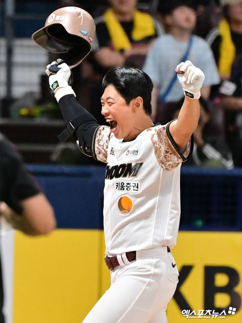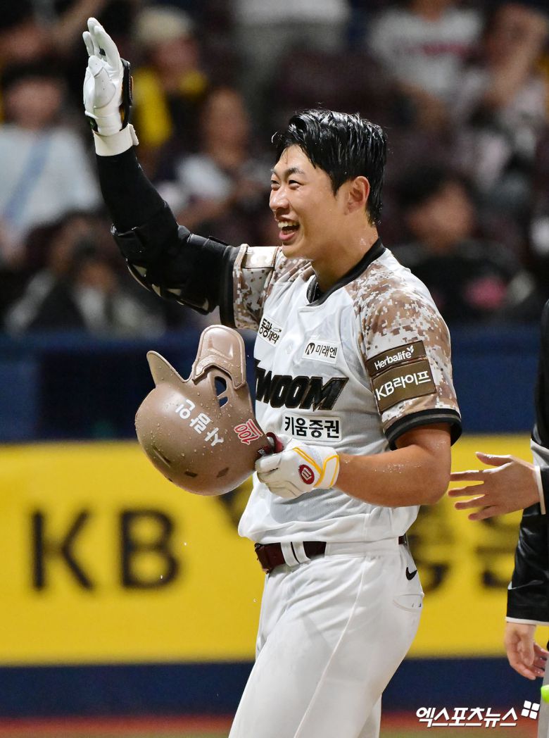 (엑스포츠뉴스 고척, 김지수 기자) 키움 히어로즈 캡틴 송성문이 프로 커리어 첫 끝내기 홈런과 함께 팀의 3연승을 견인했다. 선두 LG 트윈스를 격침시키는 멋진 한방을 터뜨리고 팀 분위기도 한껏 끌어올렸다.