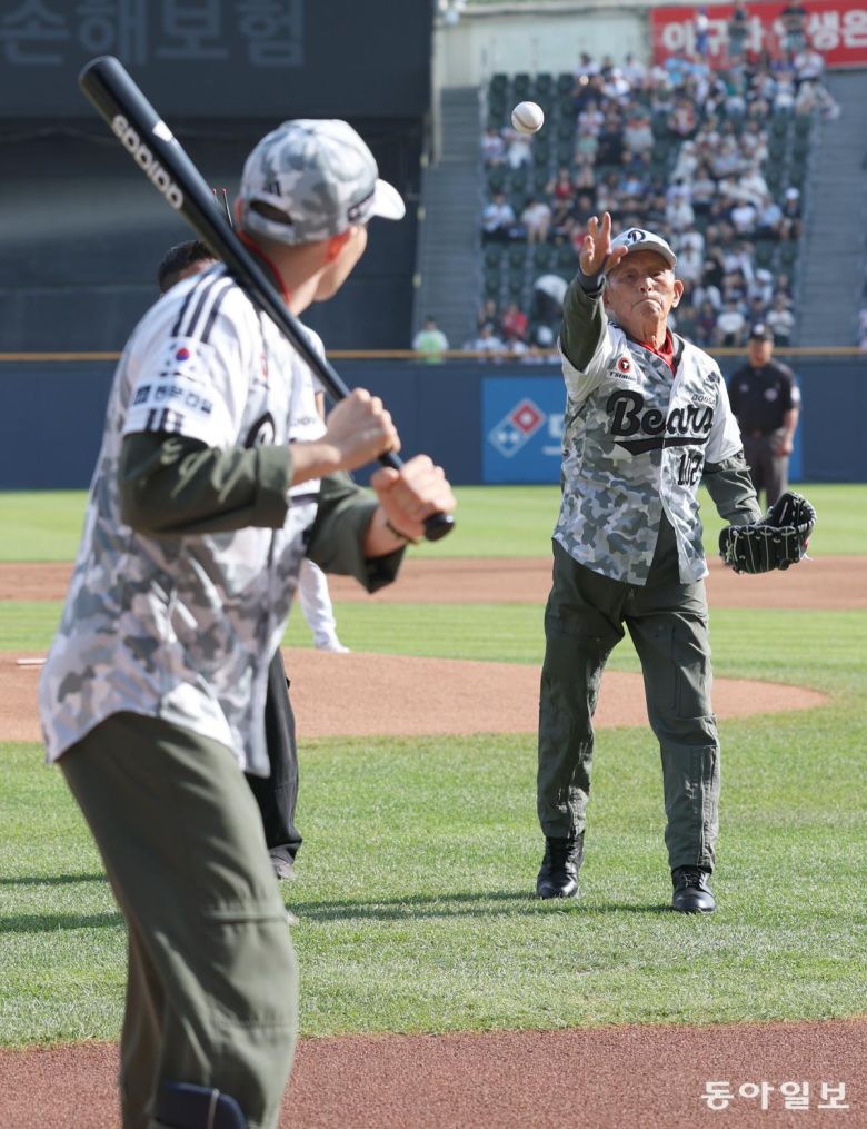 현충일인 6일 오후 서울 잠실야구장에서 열린 프로야구 롯데-두산 경기에서 6·25 참전 공군 조종사인 김두만 장군(오른쪽)이 시구하고 있다. 시타는 김 장군의 전우였던 고 강호륜 장군의 손자인 현직 F-15K 조종사 강병준 소령. 변영욱 기자 cut@donga.com Copyright Ⓒ 동아일보. All rights reserved. 무단 전재, 재배포 및 AI학습 이용 금지이 기사의 카테고리는 언론사의 분류를 따릅니다.0공유하기