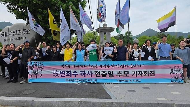 대전퀴어문화축제 조직위원회와 행동하는 성수자인권연대는 6일 대전현충원에서 ‘고 변희수 하사 추모식’을 열었다.