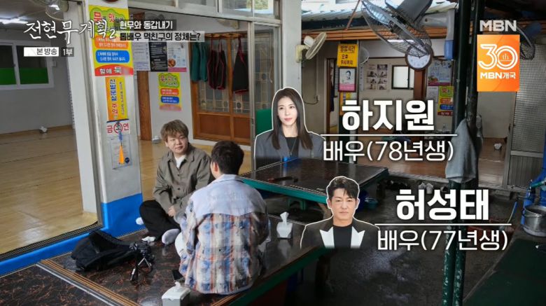 묵밥과 정구지 등 다양한 메뉴를 맛본 뒤 전현무는 "오늘 먹친구에 대한 힌트를 드리자면 배우"라면서 "이 친구는 연기도 너무 잘 하고, 저랑 동갑"이라면서 1977년생임을 언급했다.