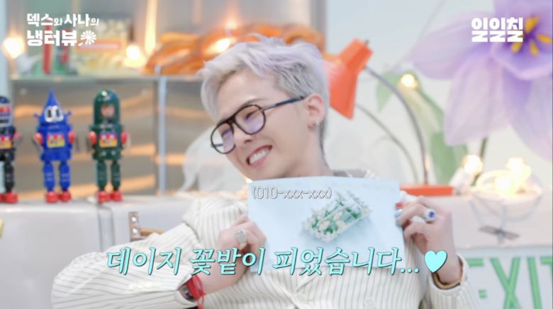 공개된 영상에서 지드래곤은 “덱스 친구를 한번 보고 싶었다”면서 덱스의 팬심에 화답해 출연했음을 밝혀 관심을 모았다. 덱스는 팬심을 증명하듯 꽃다발을 들고 등장해 고백을 하는가 하면 자신의 번호를 적은 데이지 편지까지 전하는 등 사심을 폭발시켜 웃음을 자아냈다.