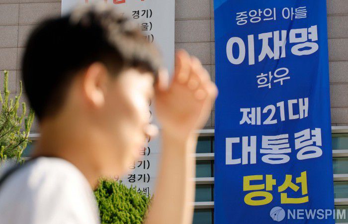 [서울=뉴스핌] 류기찬 인턴기자 = 이재명 대통령의 취임 첫날인 4일 오후 서울 동작구 중앙대학교 후문에 이재명 대통령의 당선을 축하하는 현수막이 걸려 있다. 2025.06.04 ryuchan0925@newspim.com